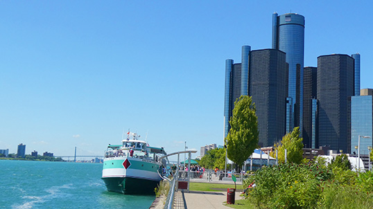 Hier, im Norden der USA zwischen der weltbekannten Metropole Chicago und der Autostadt Detroit liegt ein US Bundesstaat, der sich durch viele besondere Eigenschaften auszeichnet! Wie der Name schon sagt, finden sich hier viele Seen, allen voran die „großen Seen“ wie der Lake Michigan, der genauso heißt wie der Bundesstaat. An diesem Lake Michigan liegt die Metropole Chicago, die sich aber nicht (mehr) im Bundesstaat Michigan selbst befindet; im Bundesstaat selbst liegt Detroit, die Millionenstadt, bekannt durch riesige Autofabriken der großen amerikanischen Autohersteller. Und dann gibt es ganz viele andere Orte und Städte und ganz viele Gewässer. Und all das grenzt im Norden und Osten an Kanada. Michigan ist ein großer Bundesstaat, der ungefähr 250.000 Quadratmeter umfasst, was mehr als 2/3 der Fläche Deutschlands entspricht. In Michigan wohnen rund 10 Millionen Menschen. Ungefähr die Hälfte der Einwohner lebt im Großraum Detroit. Weitere Städte sind Grand Rapids, Flint und die Hauptstadt Lansing. Michigan ist aufgeteilt in 2 Landesteile: Die Untere Halbinsel und die Obere Halbinsel; verbunden sind beide Teile nur durch die Mackinac Bridge.